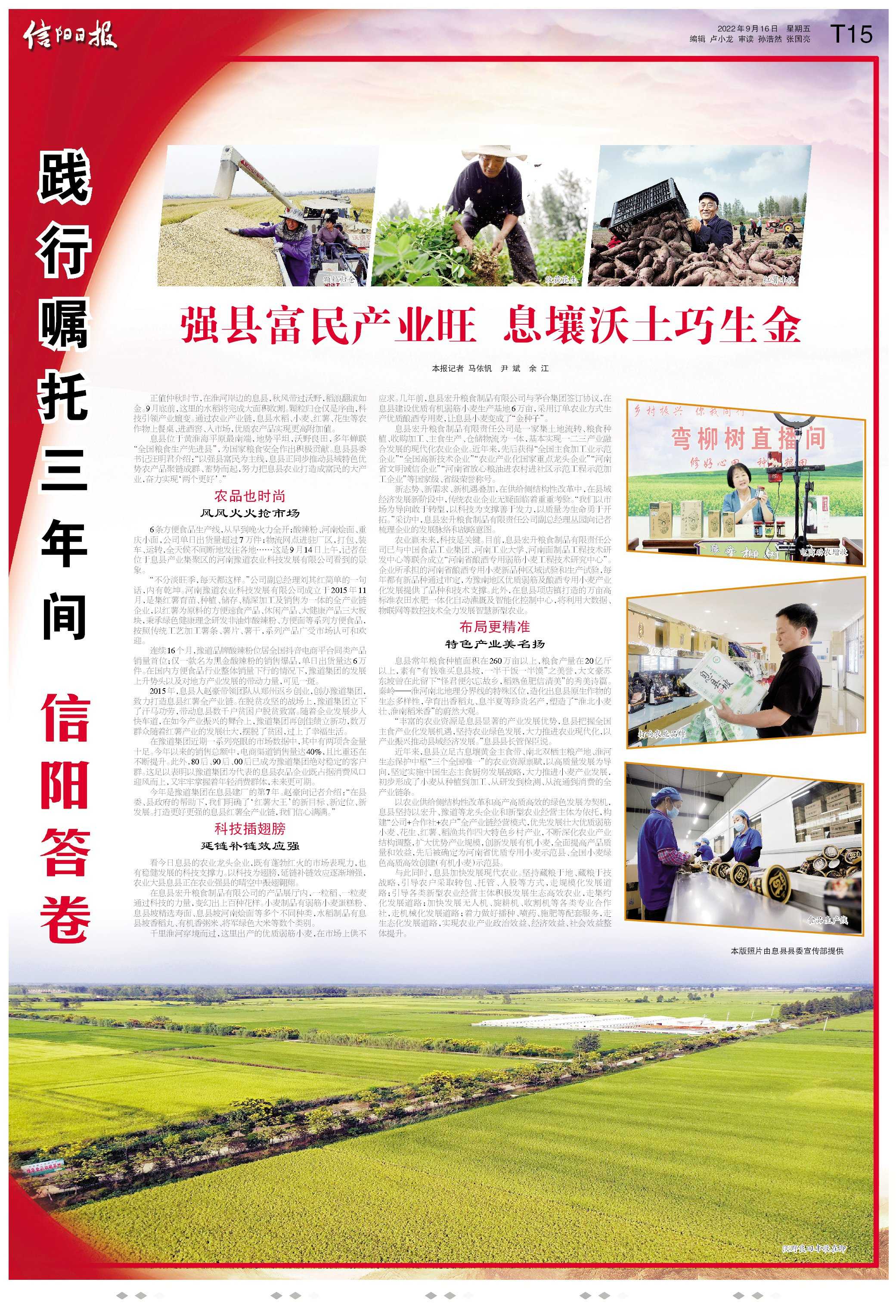 正值仲秋时节,在淮河岸边的息县,秋风带过沃野,稻浪翻滚如金。9月底前,这里的水稻将完成大面积收割。颗粒归仓仅是序曲,科技引领产业嬗变。通过农业产业链,息县水稻、小麦、红薯、花生等农作物上餐桌、进酒窖、入市场,优质农产品实现更高附加值。