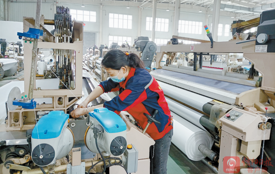 在淮滨县玖洲纺织有限公司,一台台自动化设备忙碌运转,“数字大脑”有条不紊地指挥着所有生产环节,许多智能化机器开始取代人工,空气中弥漫着微妙的纤维气味,这是纺织业独有的气息,让人感受到一种沉稳而富有活力的氛围。