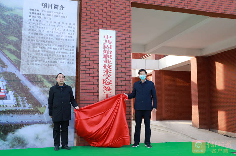 随后,县委书记王治学、县人大常委会主任苏锦峰为中共固始职业技术学院(筹)工作委员会揭牌,县委副书记、代县长杨浩威,县政协主席胡海燕为固始职业技术学院(筹)揭牌。仪式结束后,与会领导深入项目建设现场,实地查看项目进展情况。