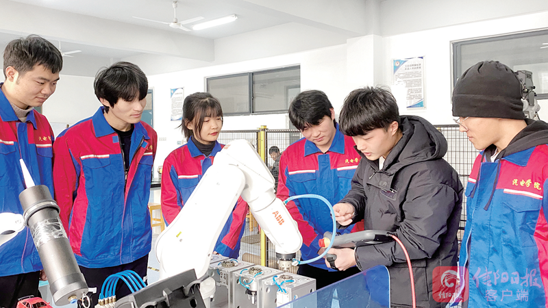 在信阳职业技术学院,紧跟行业前沿、创新专业教学的实训课堂很受在校学生欢迎。昨日,在该校汽车与机电工程学院机器人实训室内,任课教师手把手地向学生讲解汽车电子线路装置,学生听得专注,教师讲得起劲儿。