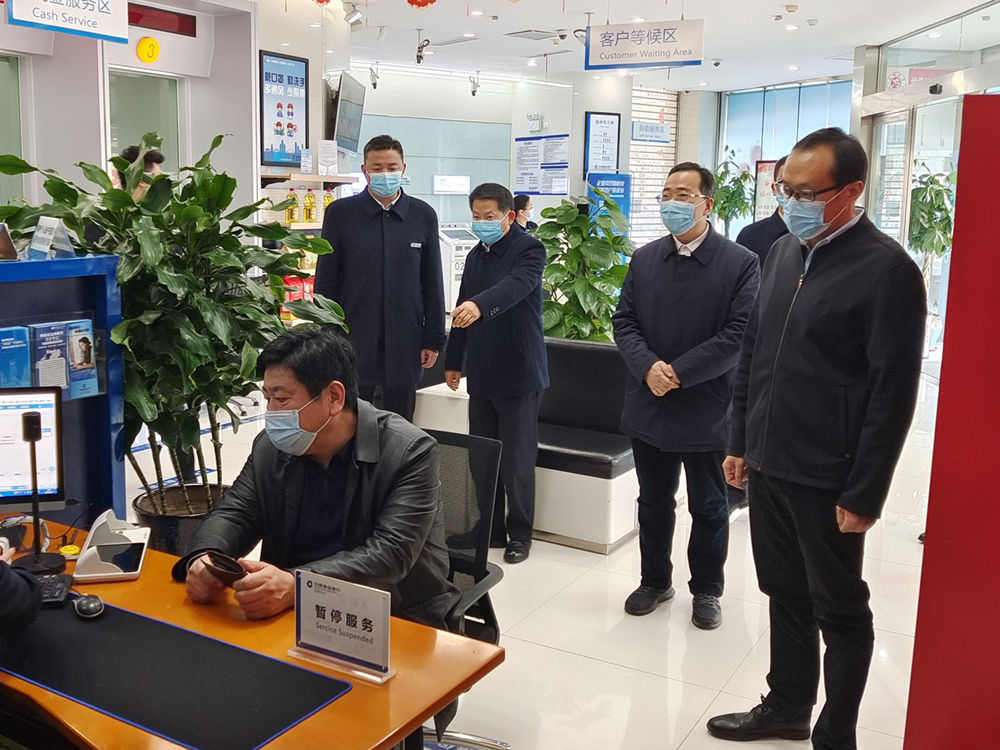 1月13日,市委常委、副市长李征带领市政府办副主任叶中洲,市金融工作局党组书记、局长宋昊检查督导中心城区金融机构和市公共资源交易中心疫情防控工作。