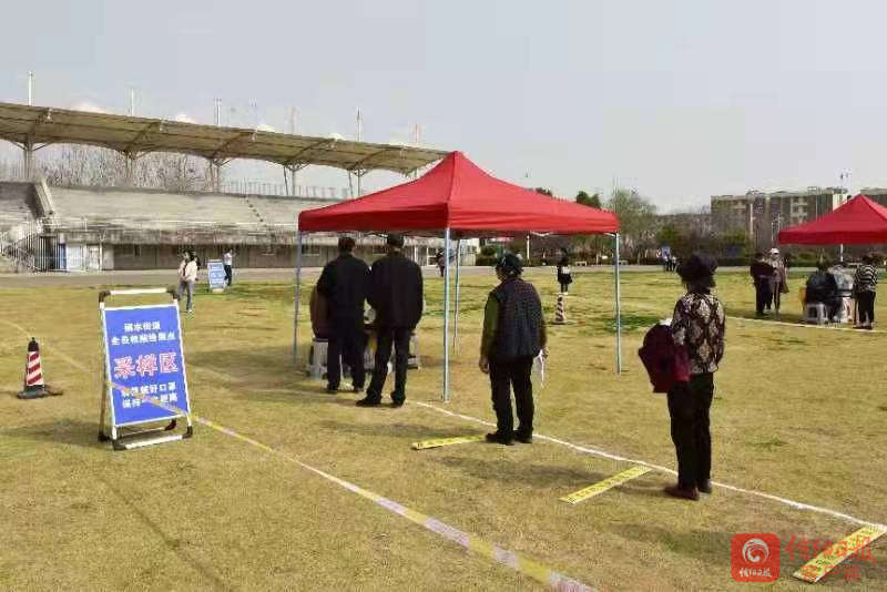 “请大家保持一米距离。”核酸检测现场设置测温区、登记区、采样区等区域,严格落实疫情防护措施,分类分组、分时分段依次进行测量体温、信息登记、核酸采样等流程。