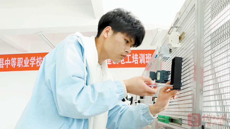 3月18日上午,在罗山县中等职业学校“人人持证、技能河南”建设电工培训班,6名学生激烈进行着一场电器维修比拼。“是学校培养了我,我会更加努力地学习。”获胜者蔡华晨笑着告诉记者。17岁的蔡华晨家住楠杆镇,3年前入校学习机械制图、数控车床、plc编程等专业,曾获河南省技能大赛数控车床项目三等奖、信阳市电器安装与维修比赛二等奖。