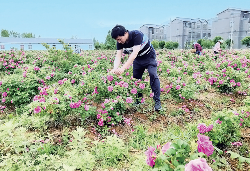 玫瑰花开,香满槐店。在光山县槐店乡晏岗村、大栗树村百亩玫瑰花海,美丽的平阴玫瑰竞相绽放,一簇簇,一丛丛,在轻风中摇曳,娇艳欲滴,农户们在花田间熟练地采摘玫瑰花苞,幸福的笑脸与盛开的玫瑰相映绯红。