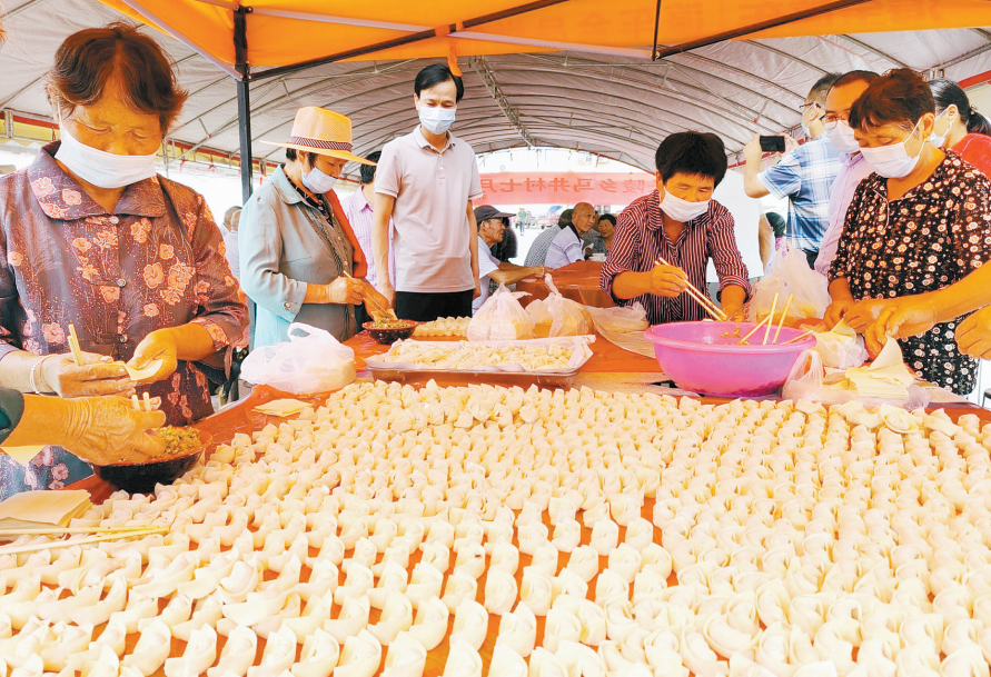 今年以来,息县县委史志研究室以“支部联支部”活动为契机,联合息县长陵乡常态化开展孝老爱亲“饺子宴”、人居环境整治、星级文明户评选等活动,构筑乡风文明新风尚,助力乡村振兴。图为近日息县史志室党支部与长陵乡马井村党支部联合开展“饺子宴”活动。