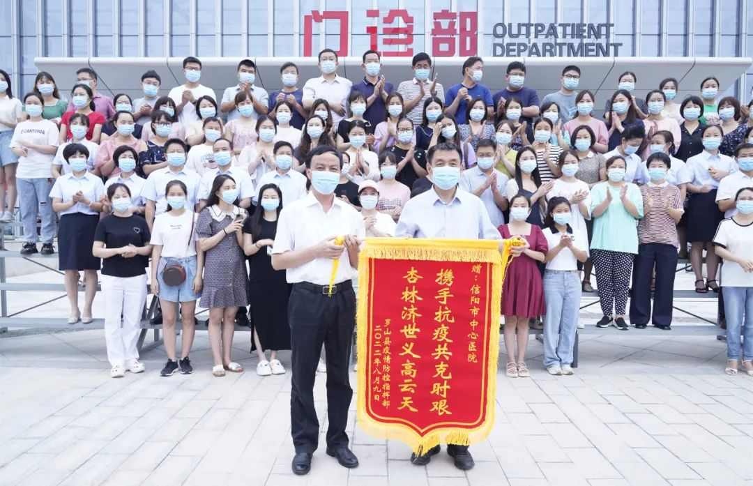 8月10日上午,信阳市卫健委、信阳市中心医院为圆满完成罗山县人民医院密接住院患者及其家属救治任务的565名医护及服务保障人员举行欢送仪式。市卫健委党组书记、主任许书动,各支援医疗机构负责人,市中心医院全体班子成员及相关科室人员参加仪式。