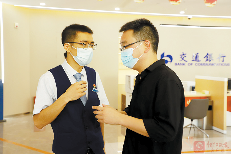 交通银行平桥支行工作人员正在为前来办理业务的市民讲解办理流程。记者 韩蕾 摄