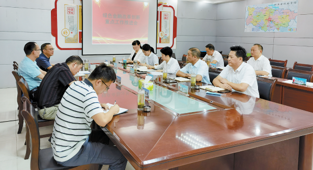 为推动绿色金融在新县落地生根,助力优化金融营商环境,9月20日,新县金融服务中心、人民银行新县支行、新县银保监组联合召开重点金融机构绿色金融推进会,专题研究部署绿色金融改革创新工作。新县农商行、建行新县支行、中原银行新县支行、人保财险新县支公司、中原农险新县支公司等5家重点金融机构主要负责同志围绕绿色金融产品创新、组织体系建设、银保业务创新融合等,全面汇报了本单位主要工作开展情况、当前业务发展基础和下一步工作意向。图为推进会现场。