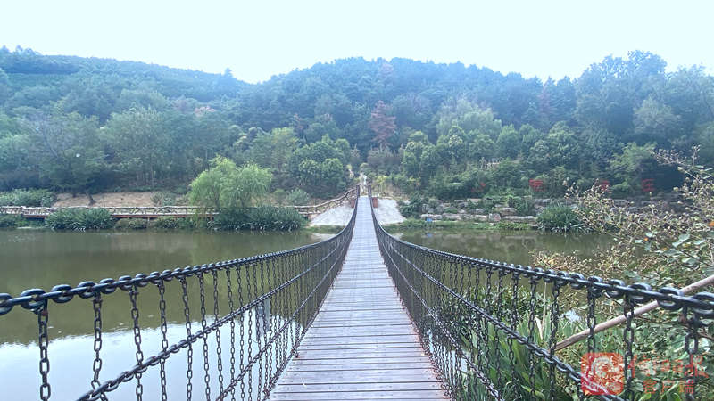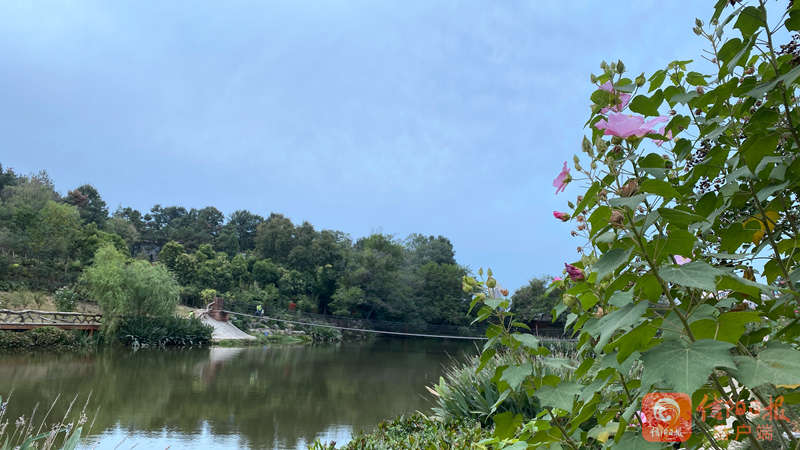 离开架子山公园,记者来到了位于浉河区河南路龙跃河山东南300米御龙湾旁的界河公园。正在公园吊桥上自拍的青年朱迪一边举着手机一边喊同行好友:“快来看,这个角度太好了!不仅可以拍到青山绿水,还可以拍到那边的小亭子和岸边的木槿花,几只白鹭也入镜了!”