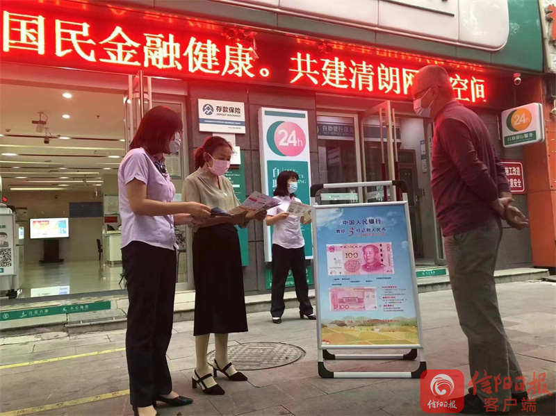 9月26日,中国农业银行信阳分行东城支行以“懂假币,识假币,反假币”为主题开展宣传活动,积极宣传反假币知识,增强群众反假币意识和识假能力。