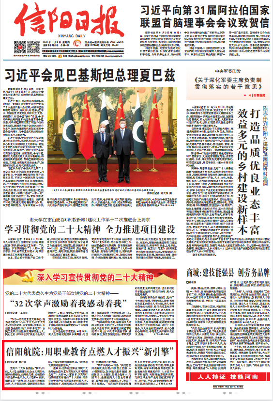 连日来,信阳航空职业学院广大教师结合自身工作实际深入学习贯彻党的二十大精神。大家表示,以实际行动贯彻落实好党的二十大精神,培养符合中原产业发展需求的技能人才,走技能成才、技能报国之路,在职业教育一线贡献自己的力量。