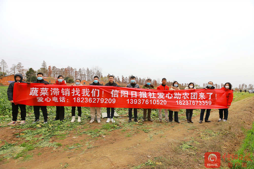 收到陈启润的求助信息后,信阳日报社助农团立即发布助农信息,架起农户和爱心企业双向对接沟通的桥梁,协助爱心企业到种植基地收购蔬菜。“看到信息后,公司立即决定采购滞销的蔬菜,尽一份力量。今天我们信阳十宝联盟企业首批采购了2万斤萝卜,已经装车运走。”信阳十宝联盟企业何家冲山茶油公司负责人表示,后续将继续前来购买蔬菜。