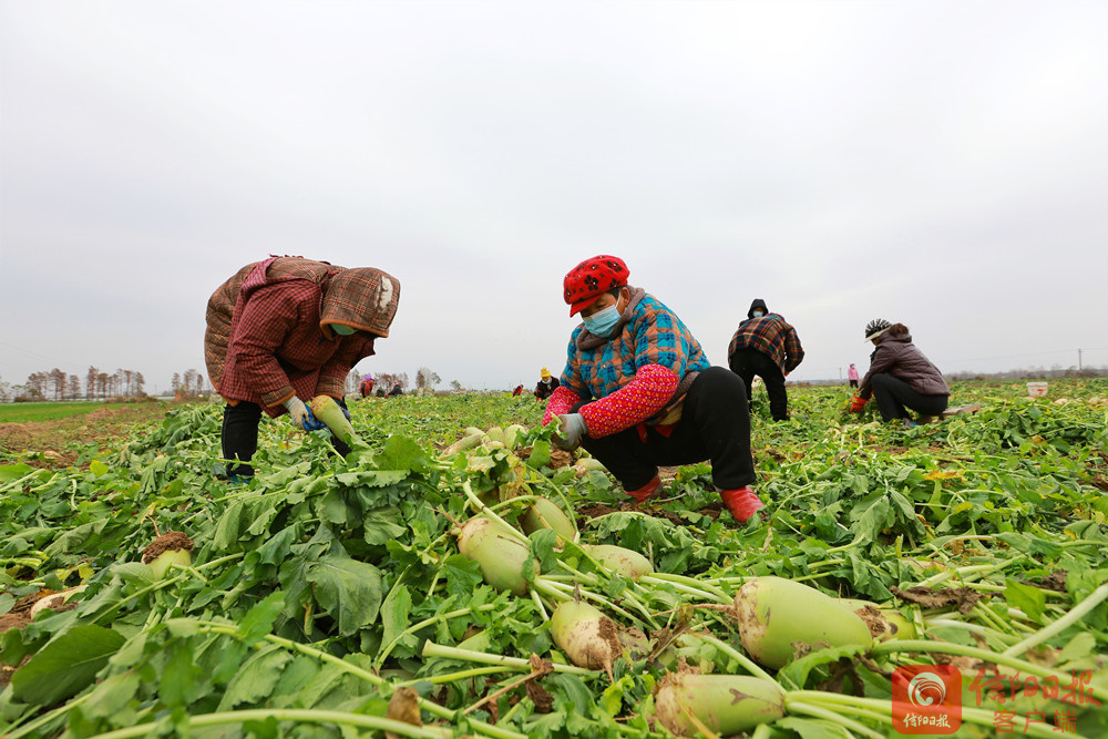 11月30日,气温骤降,寒风凛冽,平桥区长台关乡长台村的蔬菜基地里一派热闹景象,村民们冒着严寒拔萝卜、装袋。“之前一天最多卖个几百斤,今天一会儿就卖了5万斤。”看着一袋袋萝卜被装上货车,菜农陈启润紧皱多日的眉头终于舒展开来。