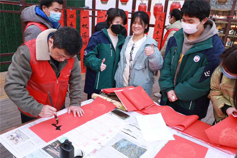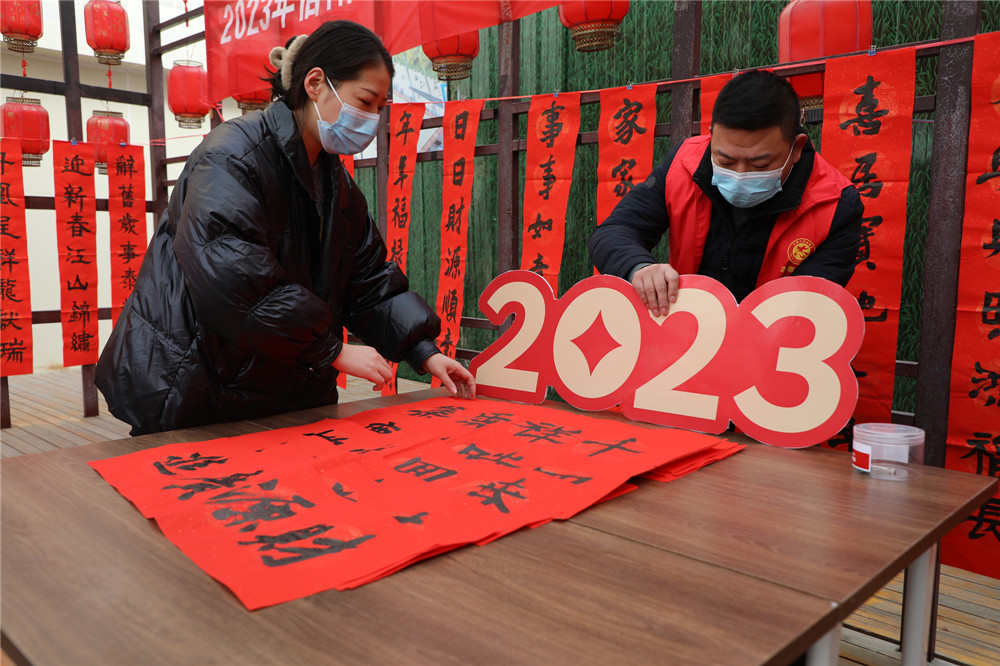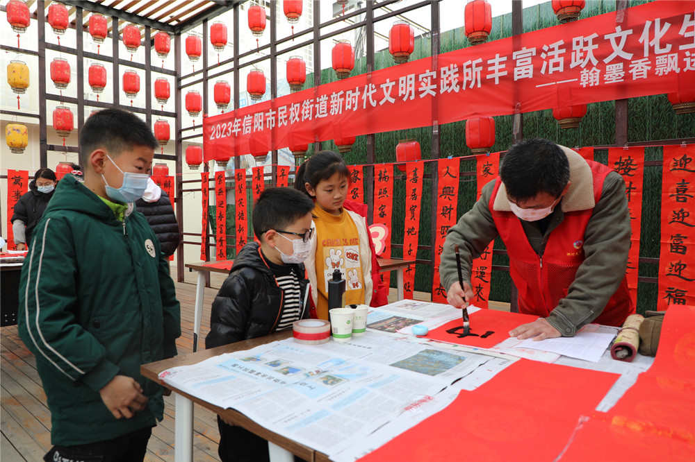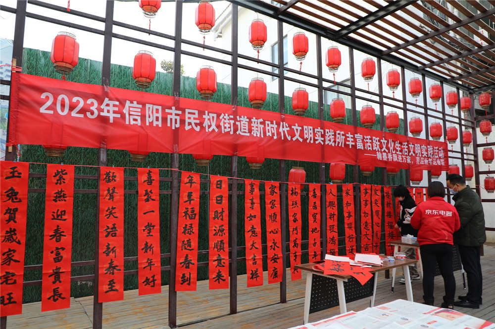 1月11日,浉河区民权街道在胜利路步行街举办“翰墨香飘进万家 喜迎新年送春联”文化生活文明实践活动。