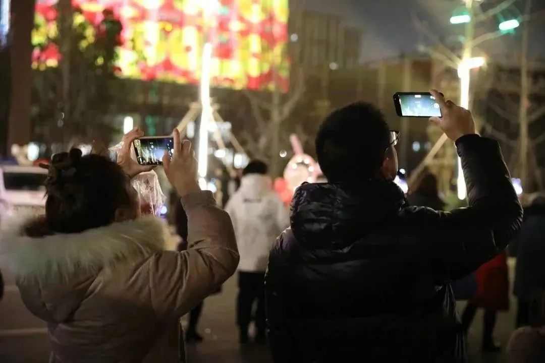 演出现场人山人海,大家纷纷举起手机拍照、录影,跟随无人机的表演欢呼,共同欣赏着这场科技与艺术完美结合的“高空光影秀”。最后在现场互动环节中,观众在主持人的带动下,向金融大厦的投影墙挥手留念,摄像机记录下人们灿烂的笑容,共同迎接新年的到来。