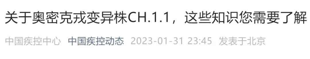 1月31日晚,中国疾控中心公众号发布关于奥密克戎变异株CH.1.1的相关知识,详情如下: