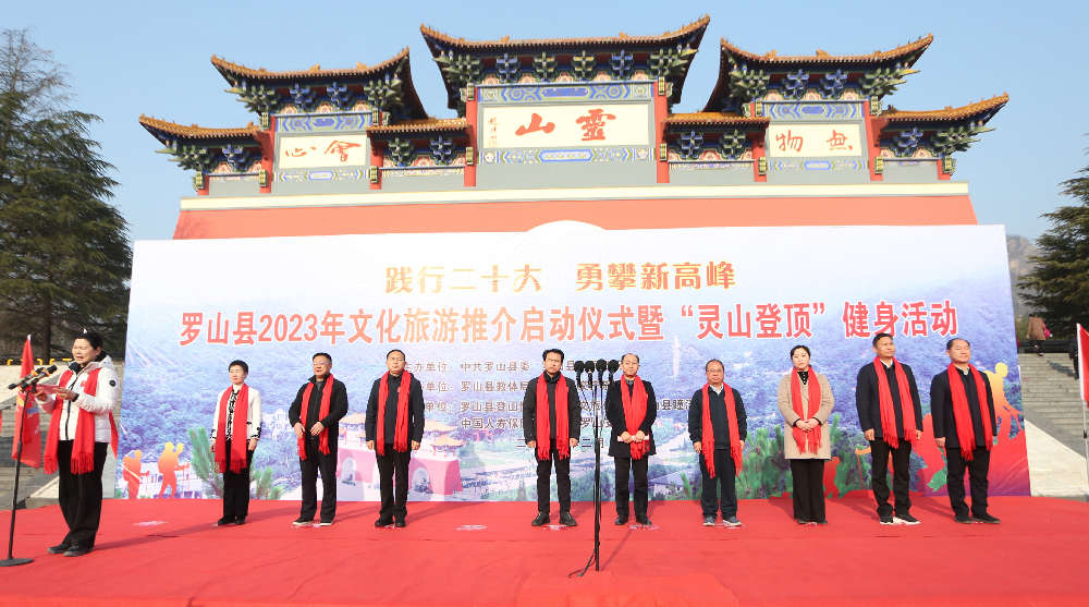 2月4日上午,由罗山县委、县政府主办,罗山县教体局、罗山县文旅局承办的2023年文化旅游推介启动仪式暨“灵山登顶”健身活动,在灵山风景区举行。信阳市人大常委会副主任、罗山县委书记周哲,罗山县县长余国芳,信阳市文广旅局局长裴军、副局长贝娟,市教体局副局长董再春与参赛运动员和社会各界群众一起迎新春、登灵山。