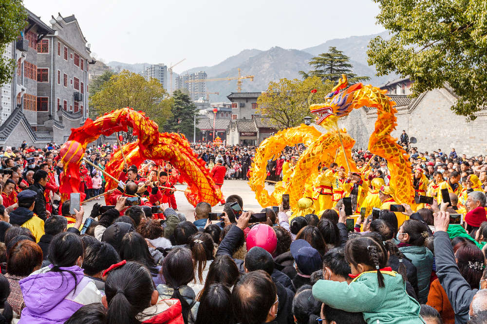鄂豫皖首府旧址广场上,龙腾盛世庆元宵