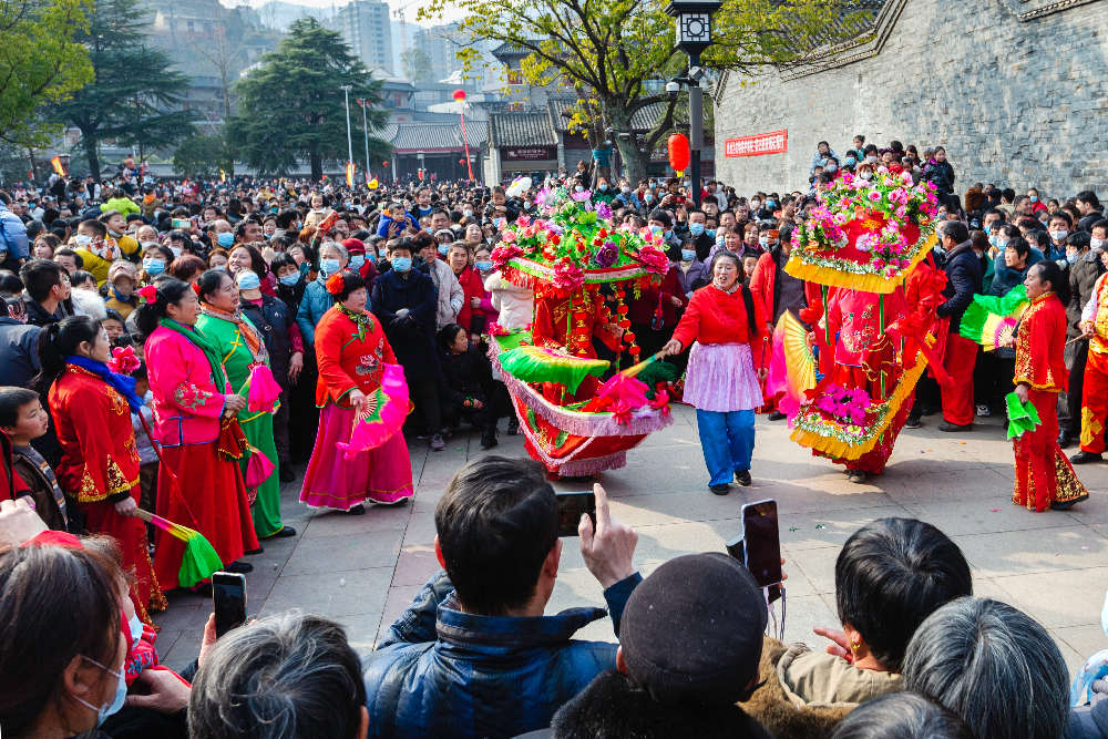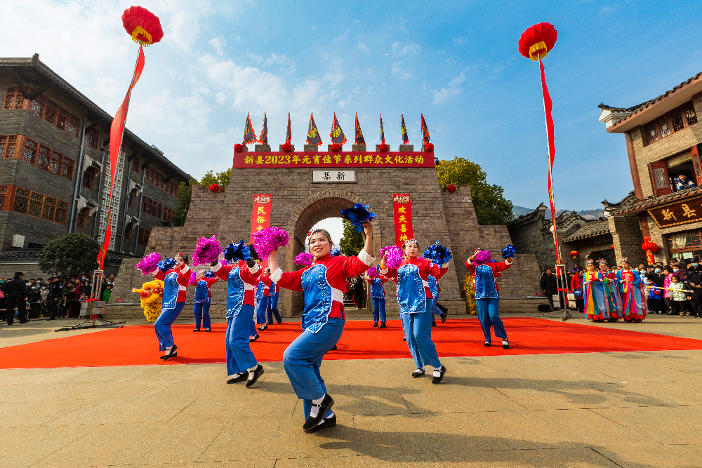 舞狮舞龙、竹马旱船、地灯戏、抬花轿、河蚌舞……2月3日,在新县首府路历史文化街区,游人如织,热闹非凡。新县“民俗文化闹新春·欢天喜地庆元宵”系列群众文化活动在这里举办,极具地方特色的民俗表演,为老区增添了浓浓的节日氛围。