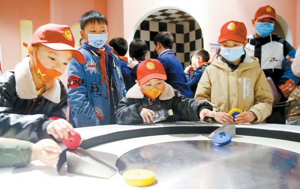3月25日,浉河区五星街道宝石社区组织开展新时代文明实践“宝石科普体验行”活动,带领辖区学生参观市科技馆。图为孩子们在馆内各展示点一路观看、一路体验、一路提问,徜徉在科技的海洋里的场景。