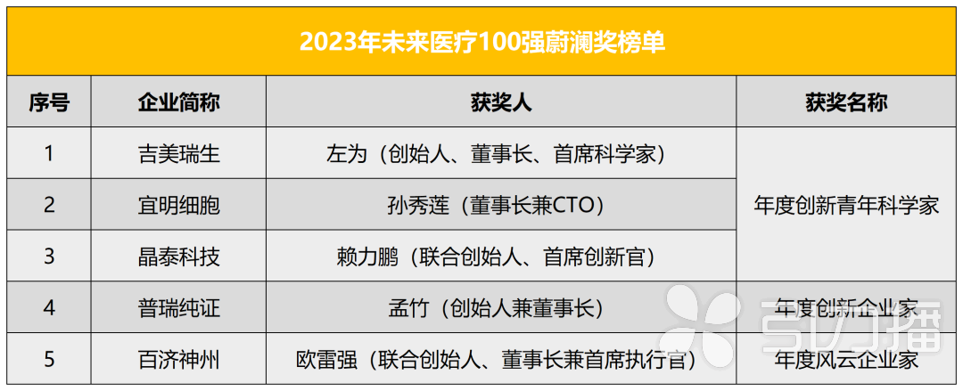 2023未来医疗100强系列榜单下设:未来医疗100强·主榜、未来医疗100强·上市企业创新力排行榜、未来医疗100强·澎橙奖、未来医疗100强·蔚澜奖及未来医疗100强·价值领域奖。