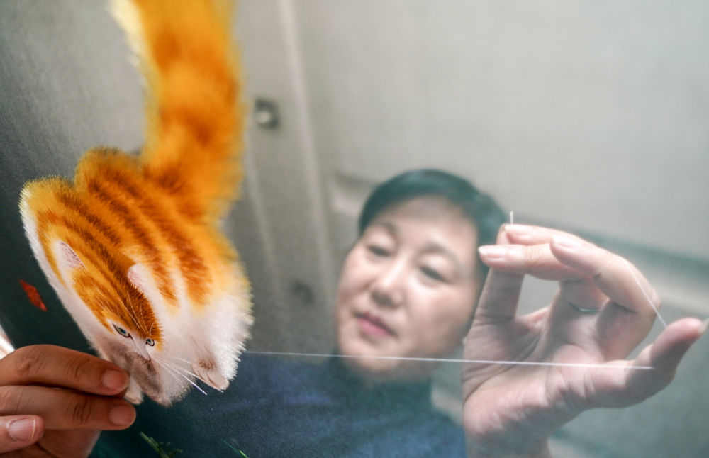 苏绣国家级非遗传承人姚惠芬在刺绣双面绣(2019年6月11日摄)。新华社记者 杨磊 摄