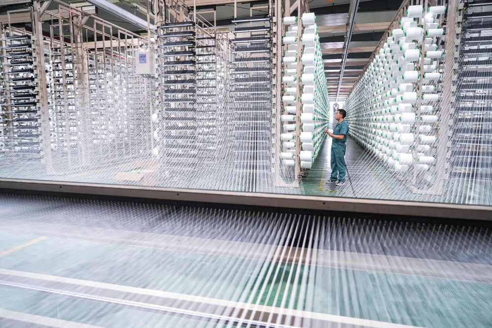 工人在位于苏州市吴江区盛泽镇的恒力集团博雅达纺织智能车间作业(2021年5月14日摄)。新华社记者 李博 摄