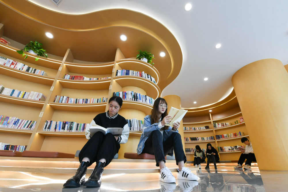 市民在江苏省张家港市沙洲湖益空间·源书房内阅读(2023年4月21日摄)。新华社记者 李博 摄