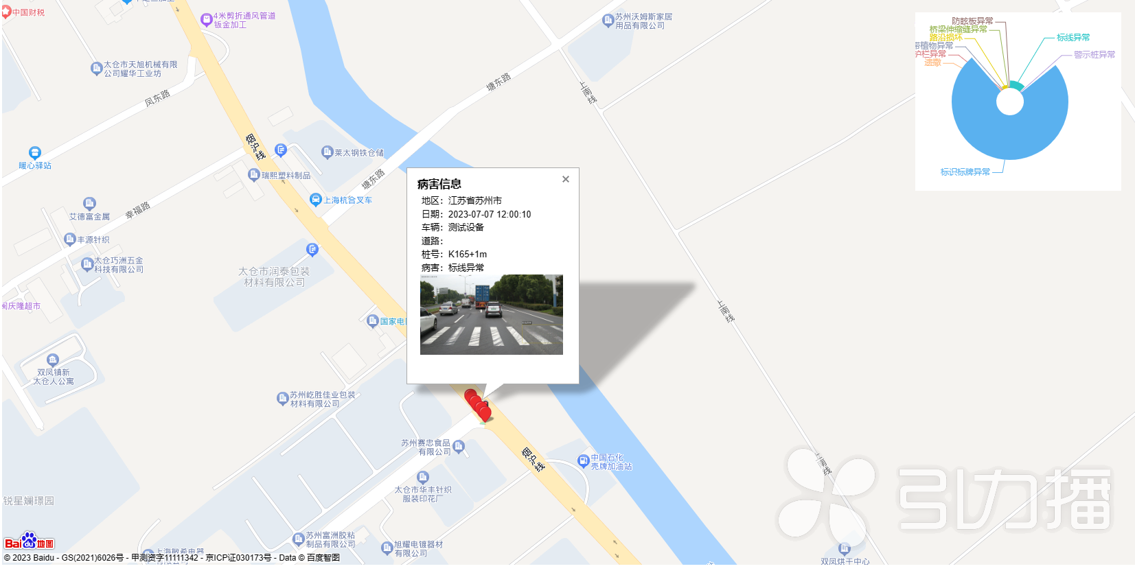 上路巡查1个月,发现病害量较之前传统巡查提升100%,这得益于苏州市公路中心新近投入使用的管养“利器”,全称为“普通国省道交通安全设施智慧巡查系统”。