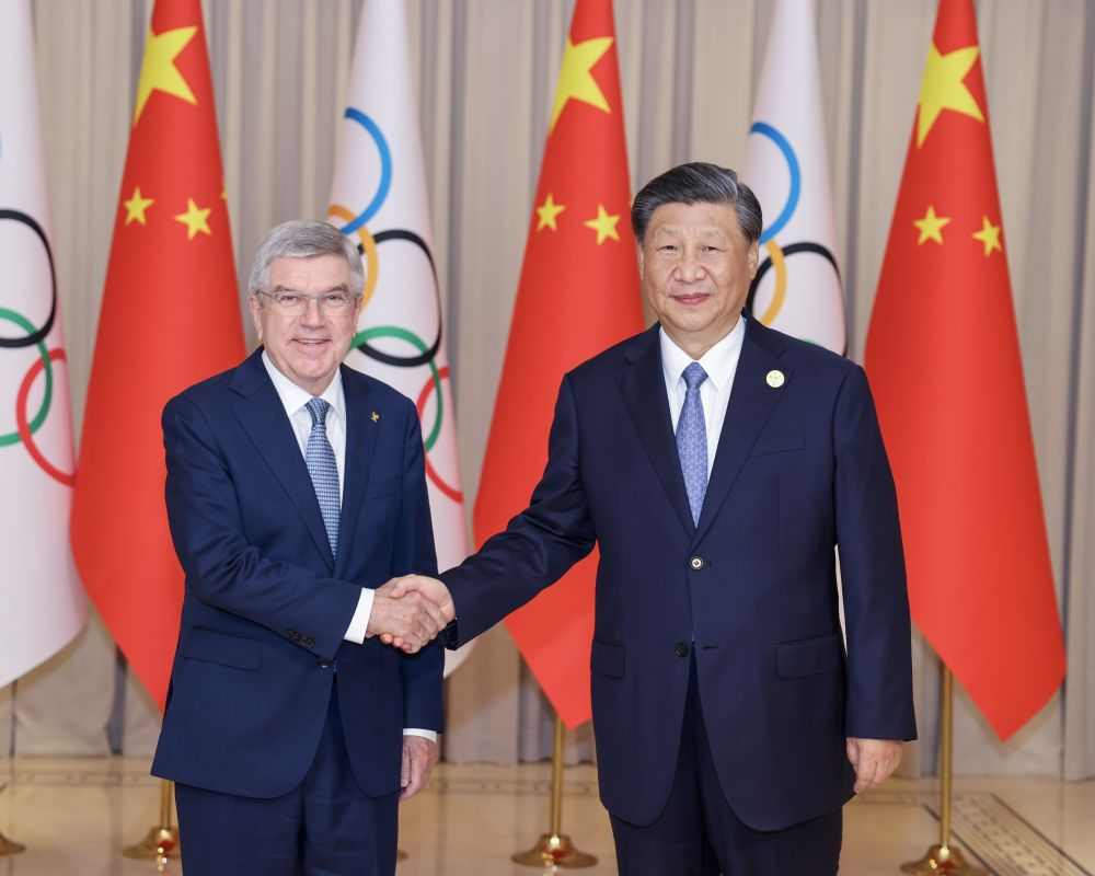 习近平强调,中国一贯重视发展体育事业,积极参与国际奥林匹克事务,践行“更快、更高、更强——更团结”的奥林匹克格言。去年中国克服新冠疫情等挑战,向世界奉献了一届“简约、安全、精彩”的北京冬奥会,北京成为全球首个“双奥之城”。中国传播奥林匹克精神的脚步永不停歇,愿同国际奥委会一道,坚持体育非政治化原则,充分利用北京冬奥会遗产,为推进奥林匹克事业和构建人类命运共同体作出新的更大贡献。目前,杭州亚运会的准备工作已经就绪。中国政府和中国人民完全有信心呈现一届“中国特色、亚洲风采、精彩纷呈”的体育盛会,为推动奥林匹克运动发展、促进亚洲人民团结和友谊作出新的贡献。