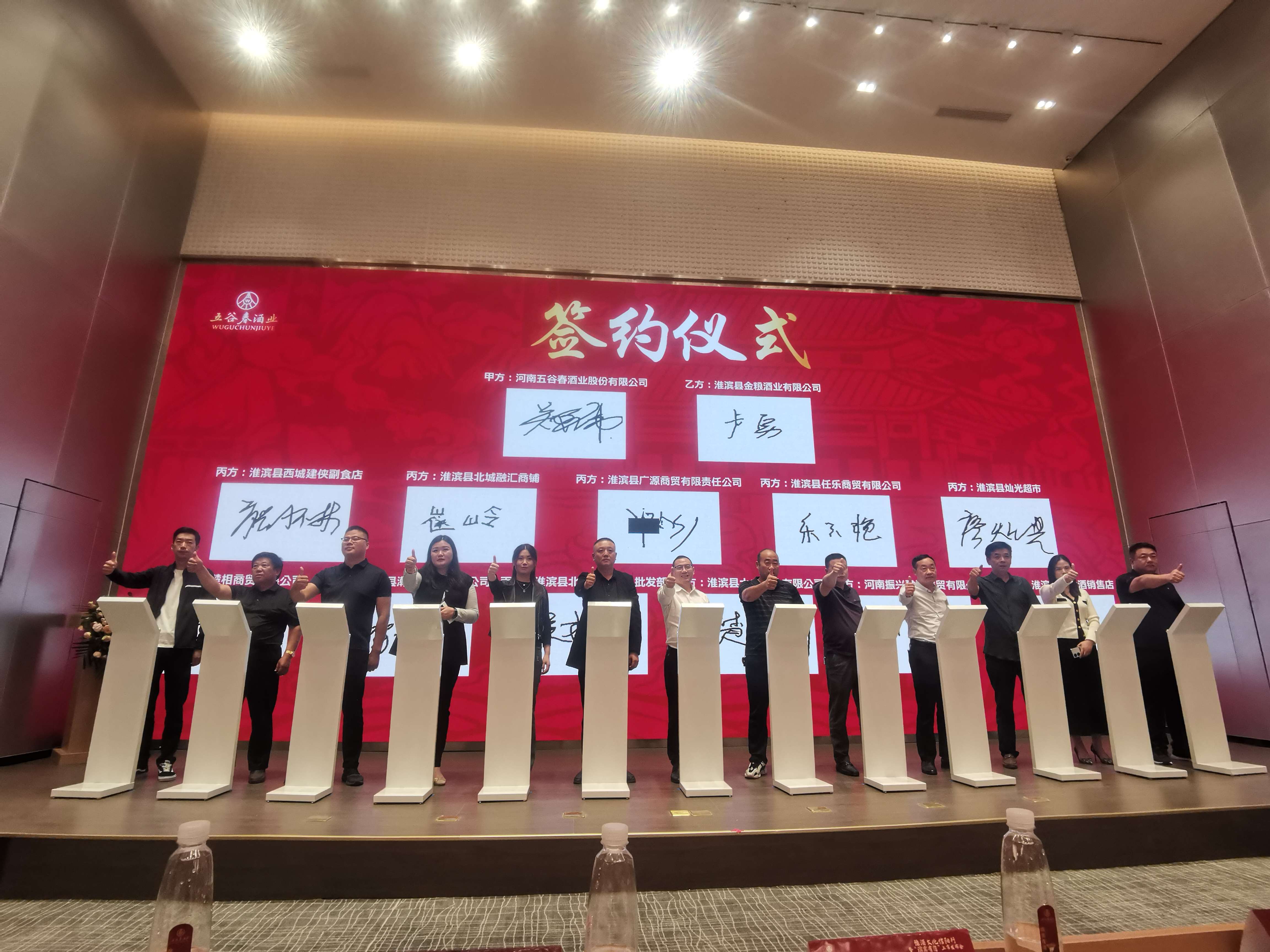活动现场,五谷春酒业与资金平台商、团购商进行签约,拉开了“滨宾有您”市场布局的序幕,也标志着厂商携手、共同开启五谷春酒业发展的新程征。