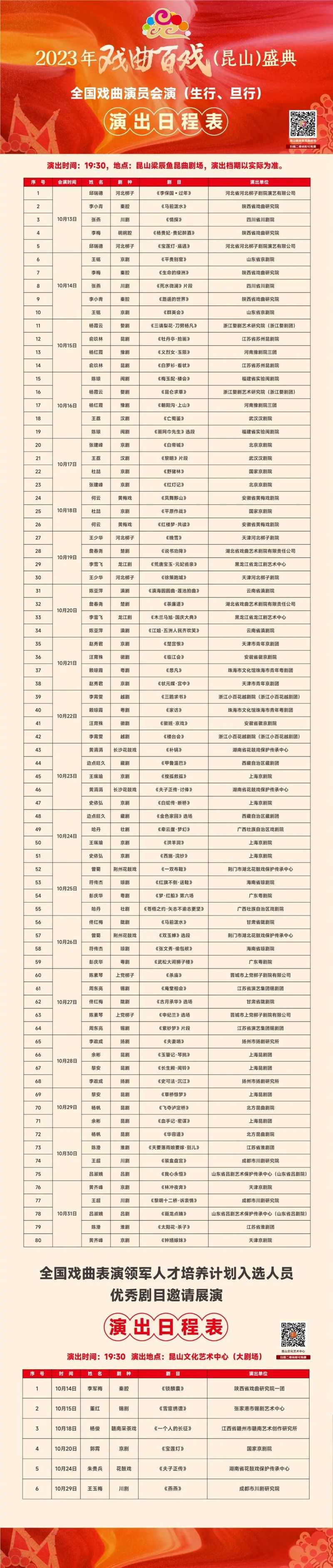 为推出新时代戏曲表演领军人才,推动戏曲事业高质量发展,从2023年起,文化和旅游部将在戏曲百戏(昆山)盛典期间分行当举办全国戏曲演员会演,今年将先举办生行、旦行会演。通过选拔确定了生行、旦行各20位优秀演员参演,从中推举出表现突出的生行、旦行演员,授予“新时代中国戏剧生行(旦行)领军人才”称号。