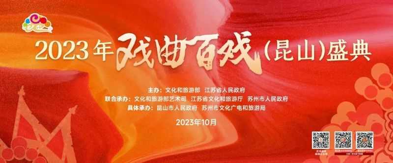 2023年戏曲百戏(昆山)盛典由文化和旅游部、江苏省人民政府主办,文化和旅游部艺术司、江苏省文化和旅游厅、苏州市人民政府联合承办,昆山市人民政府、苏州市文化广电和旅游局具体承办,以“戏曲的盛会,百姓的节日”为主题,共安排四大主体活动和五项延伸活动。