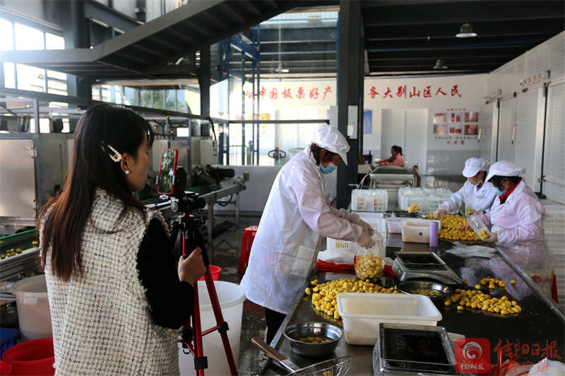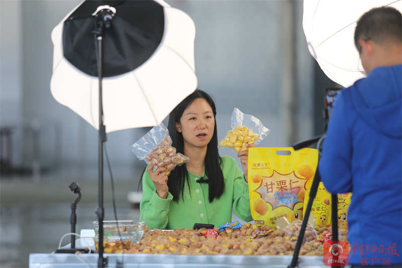 “欢迎来到直播间,宝子们,大家可以看看我手中的这颗板栗,就是从生产线上直接拿下来的哦……”生产线旁边,两位主播正在与网友互动,时不时还拿起一颗板栗试吃。“实景直播是我们销售的一种尝试,5位主播轮着播,这种所见即所得的形式,能让网友更加直观地感受到产品的品质。哪怕只是一个简单的剥栗子,也是一个很解压的直播内容。”甘龙介绍。