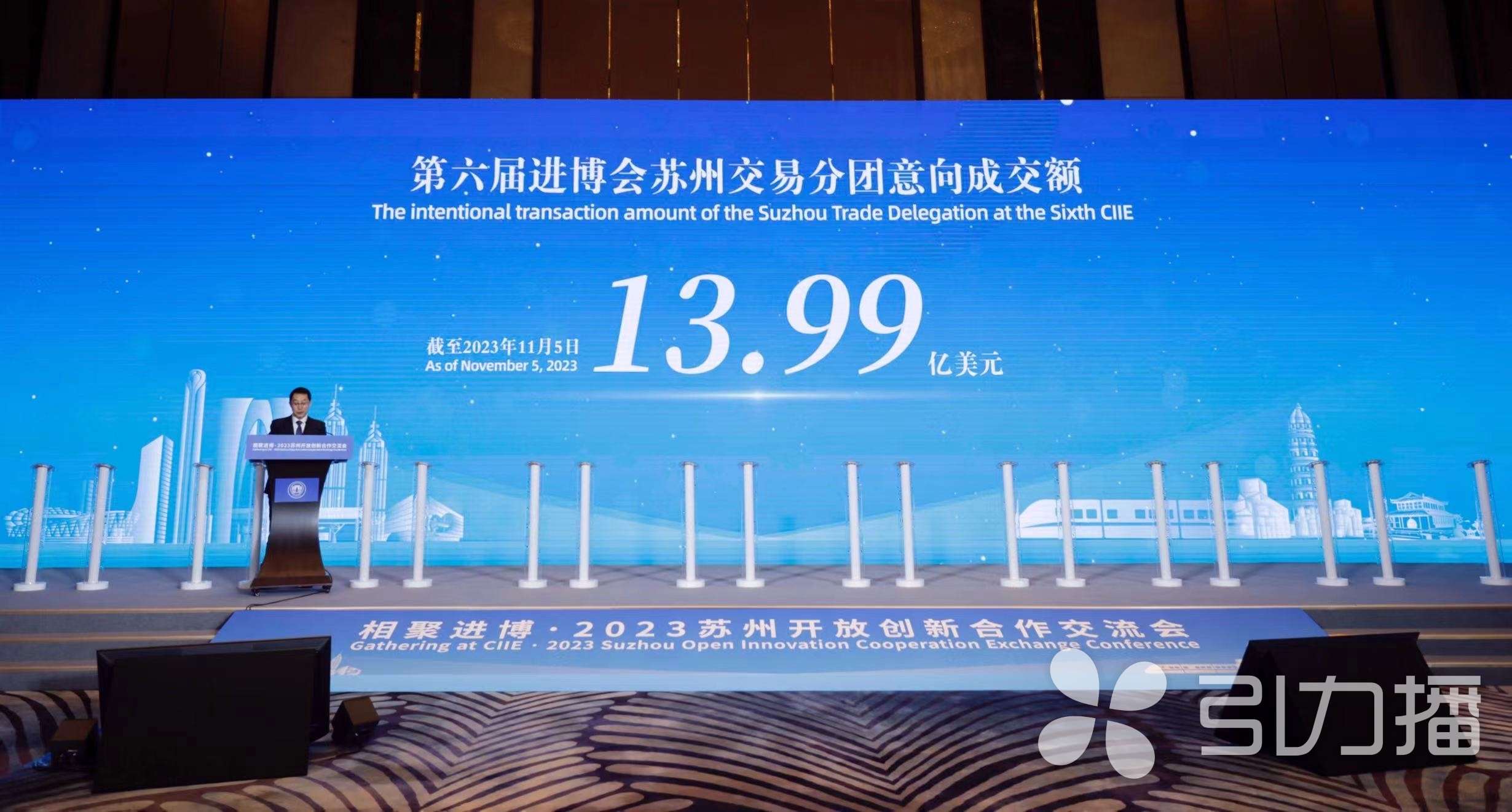 第六届进博会进入第二天。今天(11月6日),苏州在上海举办“相聚进博·2023苏州开放创新合作交流会”,苏州企业家组成的“采购天团”代表进行了签约。记者从苏州市商务局获悉,截至11月5日,本届进博会苏州交易分团已实现意向成交金额13.99亿美元,超过了去年进博会总意向成交额,目前继续保持全省首位。