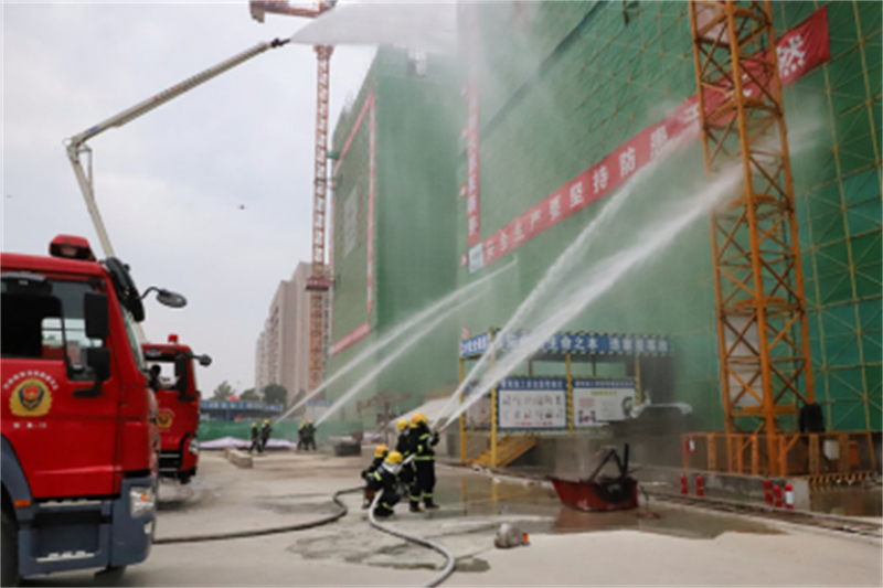 会后,与会人员观摩了建筑工地消防演练和施工现场消防安全生产标准化建设情况。(张琦)