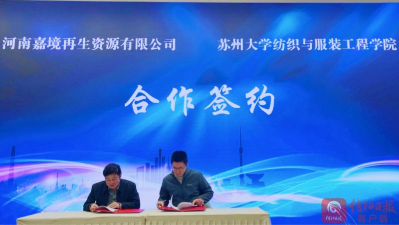 苏州大学纺织与服装工程学院和信阳颐和非织布有限责任公司、潢川荣丰纺织实业有限公司、河南嘉境再生资源有限公司等企业签订了战略合作协议。