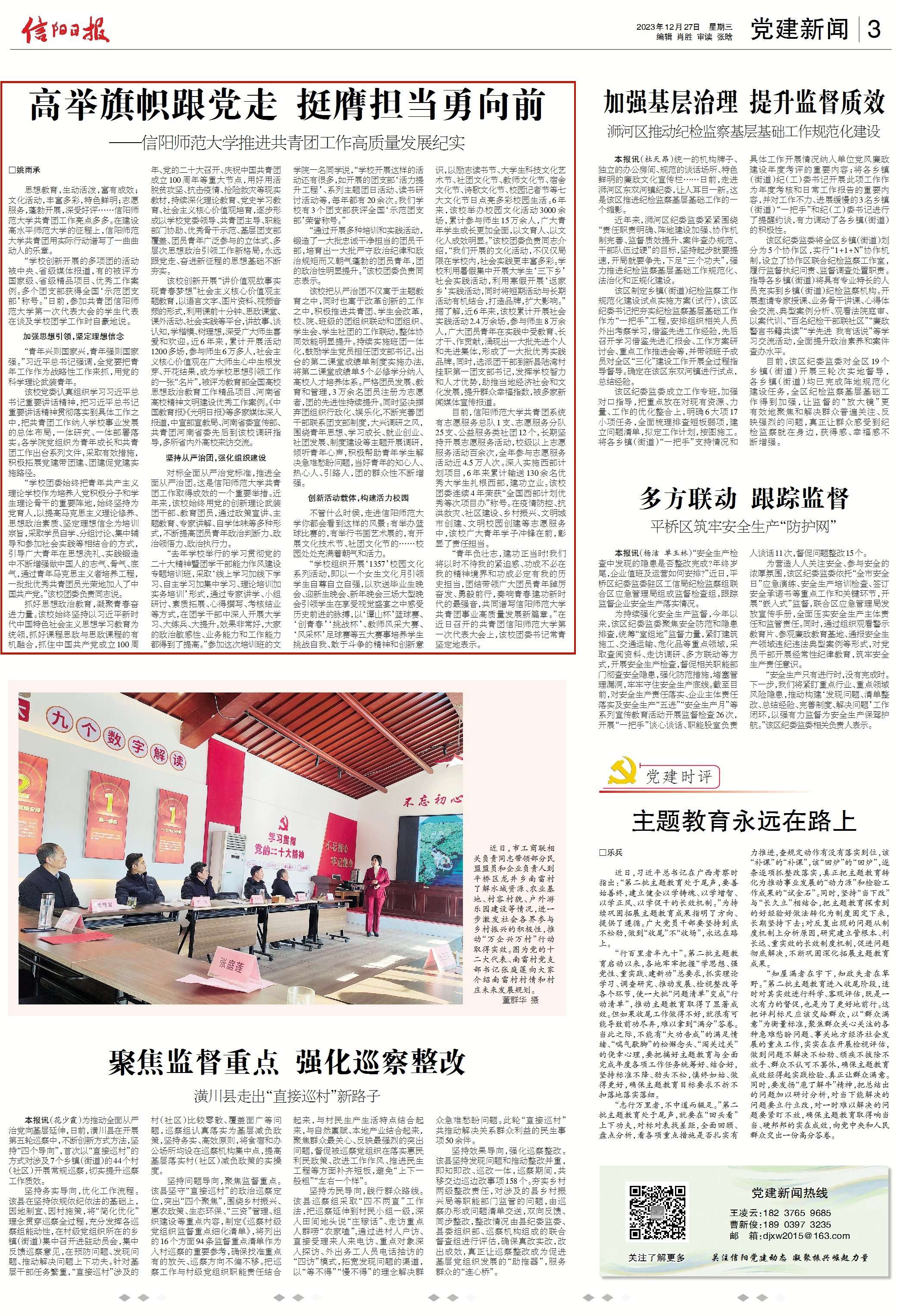 “去年学校举行的学习贯彻党的二十大精神暨团学干部能力作风建设专题培训班,采取‘线上学习加线下学习、自主学习加集中学习、理论培训加实务培训’形式,通过专家讲学、小组研讨、素质拓展、心得撰写、考核结业等方式,在团学干部中深入开展大学习、大练兵、大提升。效果非常好,大家的政治敏感性、业务能力和工作能力都得到了提高。”参加这次培训班的文学院一名同学说,“学校开展这样的活动还有很多,如开展的团支部‘活力提升工程’、系列主题团日活动、读书研讨活动等,每年都有20余次。我们学校有3个团支部获评全国‘示范团支部’荣誉称号。”