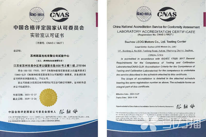 近日,苏州市吴中区企业苏州朗高电机有限公司试验中心顺利通过中国合格评定国家认可委员会评定,获得CNAS国家实验室认证书。