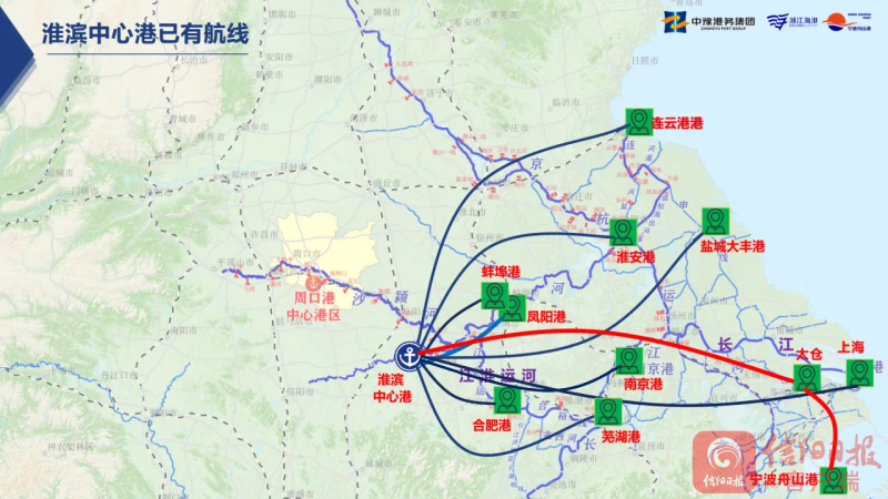 信阳市淮河港口集团总经理董林林表示,信阳淮滨中心港开航以来,已开通至凤阳、盐城、合肥、芜湖、阳逻等10条集装箱航线,货物运输辐射豫、鄂、皖、苏、浙、沪、粤、川等地。除传统的粮食、纺织品等货物外,逐步增加了石粉、珍珠岩、纯碱、木材、焦炭、凌美石、汽车配件等新货种,港口发展态势持续稳定向好。