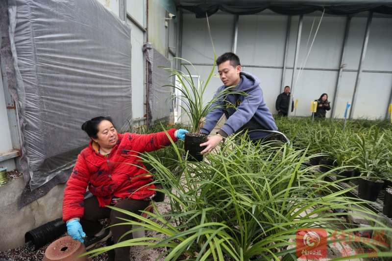 换土、装盆、施肥……1月31日,在李家寨镇水口庙村玉成兰苑花卉苗木基地,负责人林玉成正忙着打理兰花,几名花匠也在附近移栽一盆盆兰花,他们手上动作娴熟利落,毫不拖泥带水。