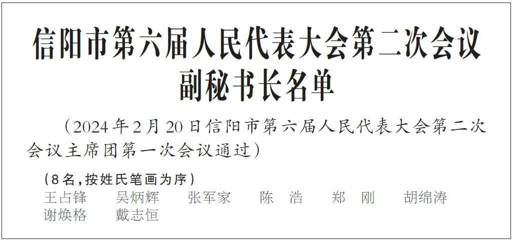 信阳市第六届人民代表大会第二次会议副秘书长名单
