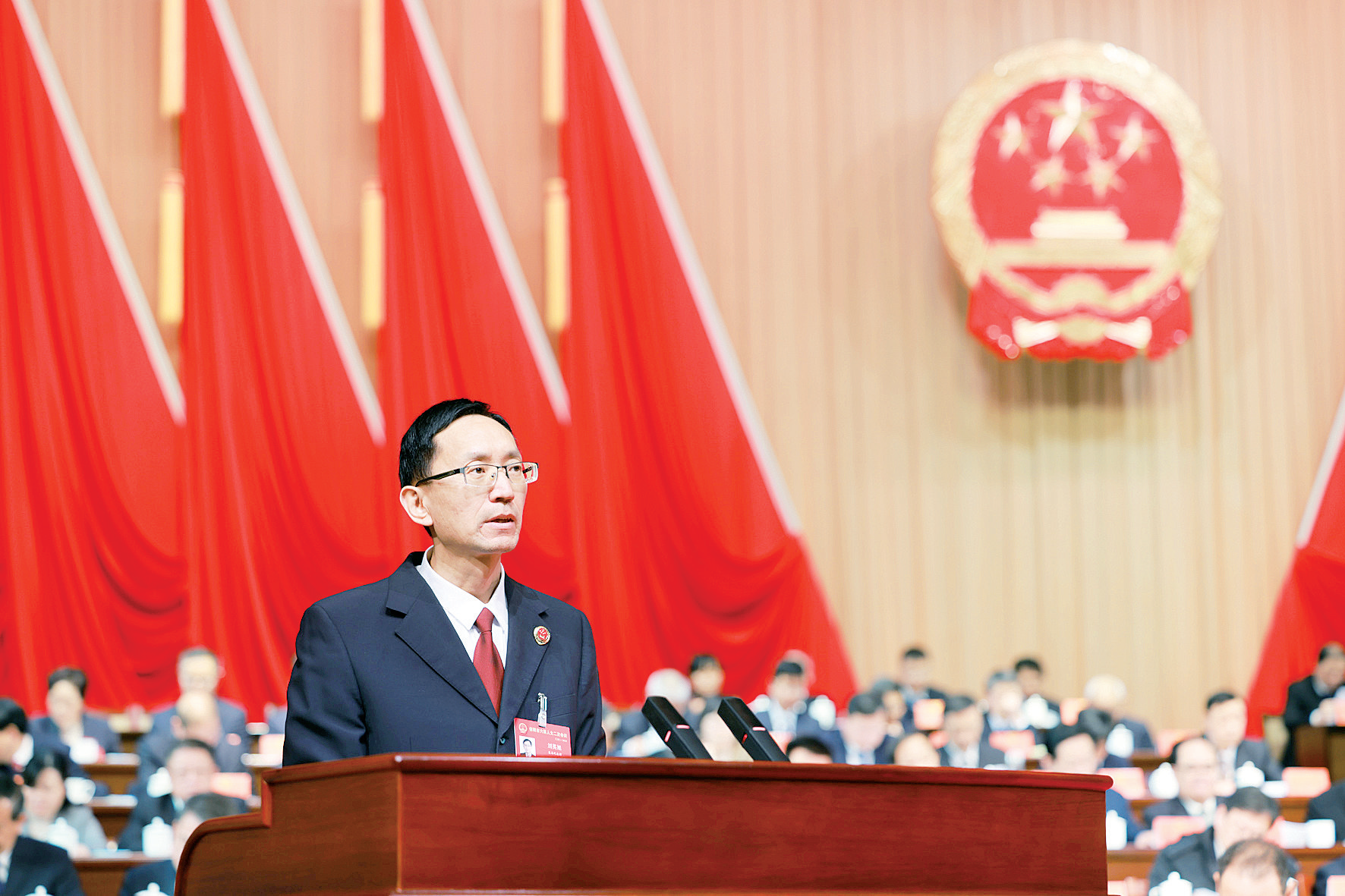 2月22日,信阳市人民检察院党组书记、检察长刘英旭在信阳市第六届人民代表大会第二次会议上作信阳市人民检察院工作报告。记者 孙浩然 摄