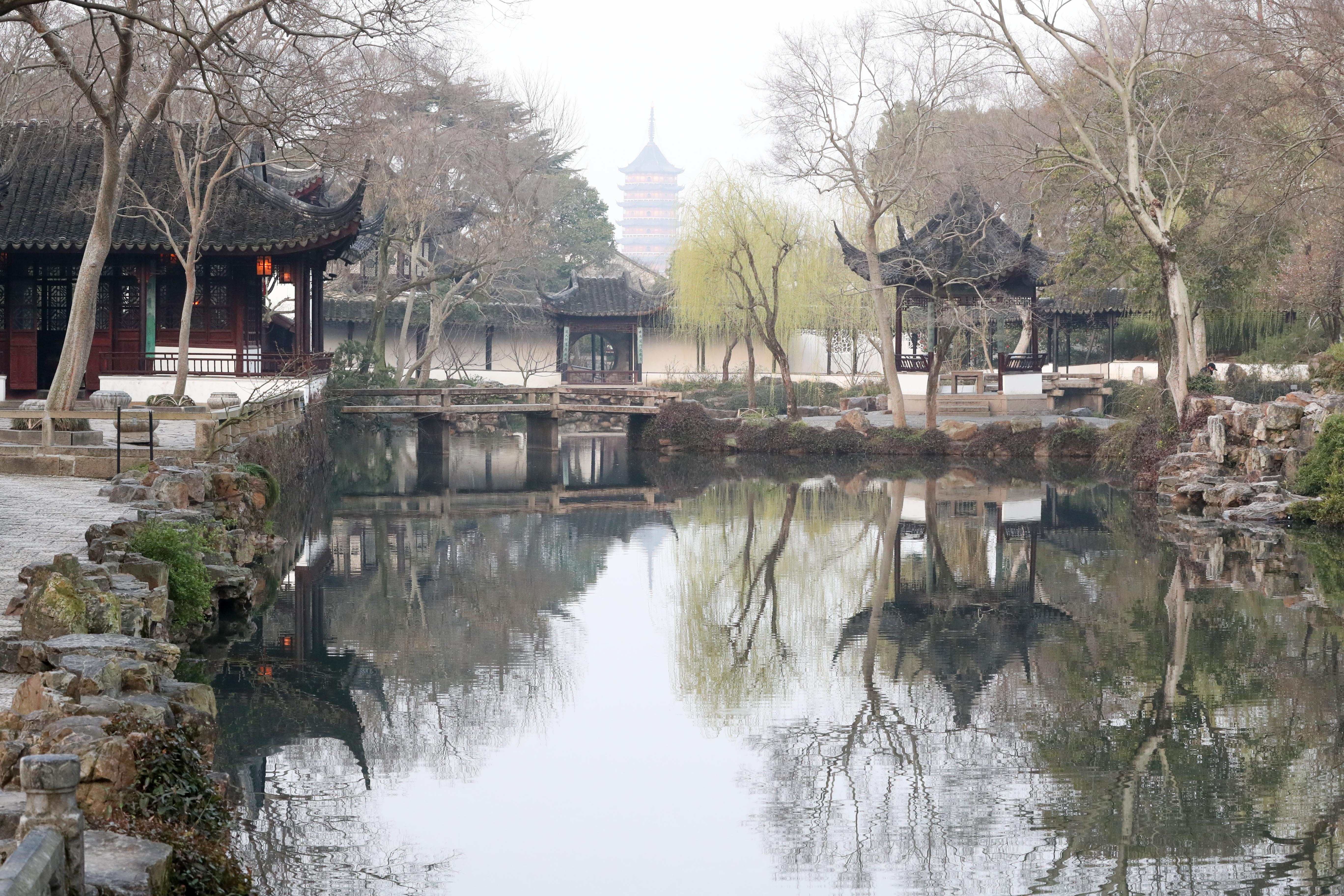 春天桃李杏樱花飞花,一渠春水柳千条。夏天的远香堂前,接天莲叶无穷碧,一池清幽一段香。秋季万山红遍、层林尽染,乌桕、枫树、榔榆点亮整片水域。冬季的梅花疏影横斜水清浅,跌宕起伏的林冠线,打破了水面的平静,形成具有韵律的水彩画。