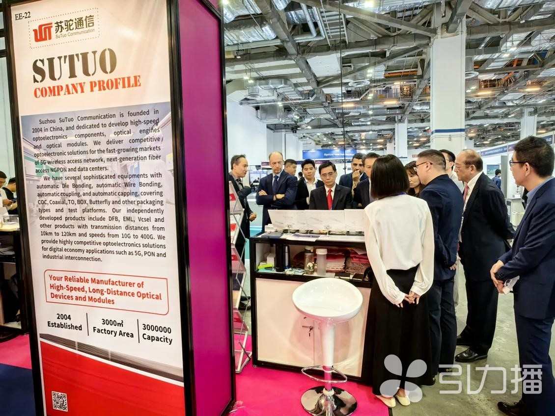 该展区由苏州市国际商会、苏州市光电产业商会牵头,联合苏州市光通信产业联盟、苏州市新型显示产业联盟等行业组织设立,集中展示了12家优秀企业的100多项抢占国际市场创新产品,吸引了中国国际光电博览会(CIOE)创始人、执行主席杨宪承先生,英富曼集团代表Sukumar Verma先生,新加坡LUX光电产业联盟主席陈瑞强教授,国际顶尖光学期刊、卓越计划领军期刊Light: Science & Applications执行主编白雨虹研究员,IEEE光子学会主席Perry Shum先生,EPIC欧洲光电产业协会总干事Carlos Lee先生等嘉宾驻足交流,分别与苏州市光电产业商会、永鼎光电子、苏驼通信的负责人作了长时间的咨询、攀谈和互动。王之琦表示,“通过商会名义对接沟通,以苏州展团的形式参展,可以帮助中小微企业直接节省展位、装修成本,还能起到较好的引领和护航的作用。”