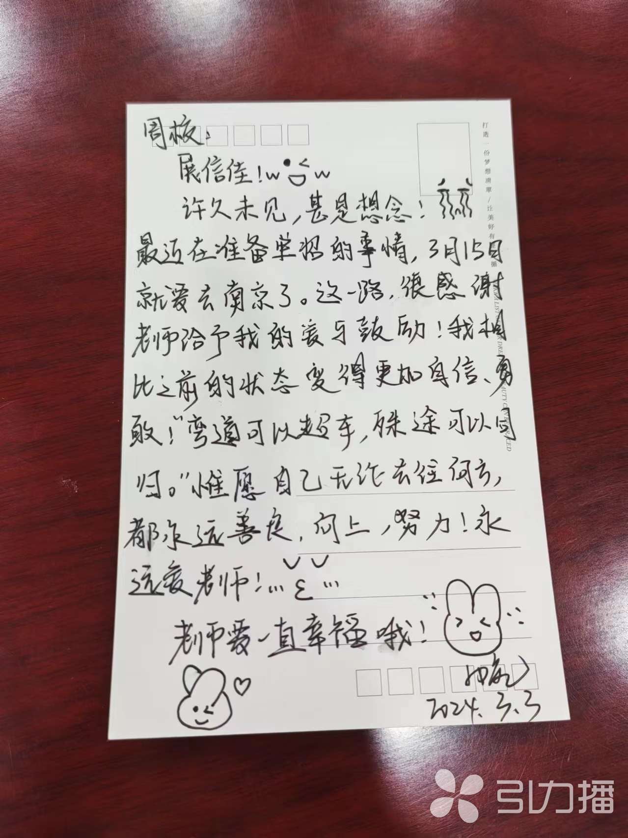 “与老师认识的这三年,我的世界因您变得辽阔了,我开始走出窄门看世界了,我开始共情世间万物,观察社会百态,但从未失去自己的善良之心……非常感谢老师给我的回信!我一定会带着老师的鼓励与爱走上考场,坦然面对所有结果,积极向上!”在田老师书信的鼓励下,小婉更加坚定地走上了适合自己的道路;在小婉真挚的来信中,田周说更深刻地明白育人的意义。她们以信为纽带,串起了学生的成长链,成就了老师的育人志。