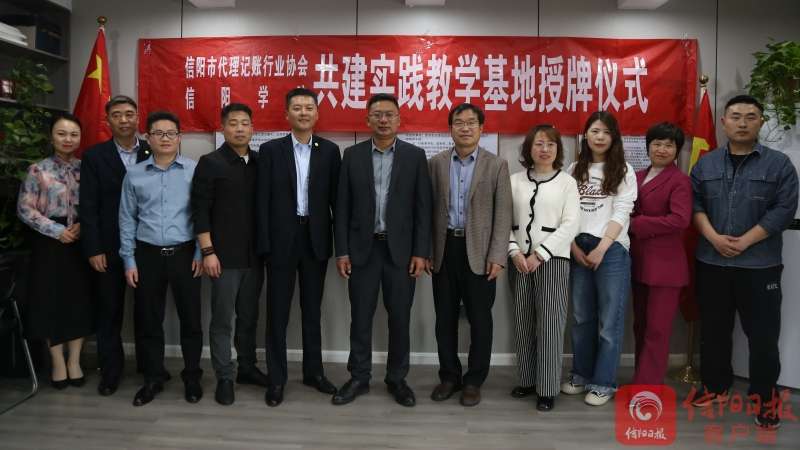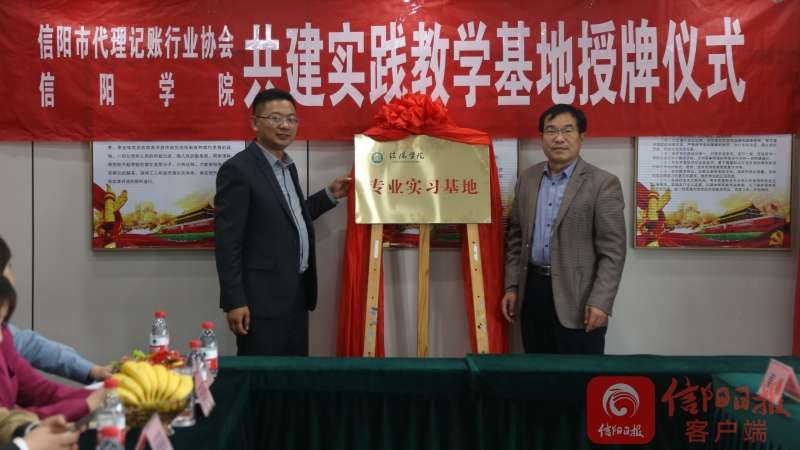 4月12日,信阳市代理记账行业协会与信阳学院共建实践教学基地揭牌仪式在信阳市代理记账行业协会举行。双方将相互合作,共同培养有较强实践能力的高素质应用型人才。