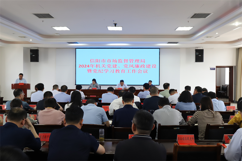 近日,信阳市市场监管局召开机关党建、党风廉政建设暨党纪学习教育工作会议,深入学习贯彻二十届中央纪委三次全会和十一届省纪委四次全会、六届市纪委四次全会精神,总结2023年党建、党风廉政建设工作,开展党纪学习教育,部署2024年重点工作。市市场监管局党组书记、局长张向阳出席会议并讲话,市纪委监委驻市场监管局纪检监察组副组长侯春玲传达中央、省和市纪委有关会议精神,并对局属系统党风廉政建设工作提出要求。会议由市市场监管局党组成员、副局长张志中主持。