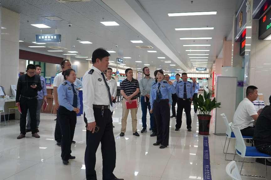 陈浩听取了近期“一窗通办”运行情况汇报,重点询问了出入境业务运行及存在的问题和困难,并同窗口新进驻人员交流。