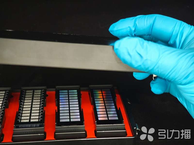 一片薄薄的单晶硅板,20多个小方块均匀分布。在微米级世界,这块单晶硅板“载量”巨大:每个小方块上有八九百万个微孔;每个微孔上都有一个微球,耦连着几十万条探针;几十万条探针同时捕获并检测一个SNP遗传标记位点……今天,在拉索生物的实验室中,记者看到了“华麦芯65K”。“固相芯片把大规模检测单元集成于一张芯片,一片就能实现百万级通量的基因分型。”刘超钧说。